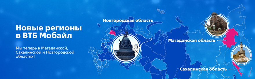 ВТБ Мобайл начал работать в Магаданской, Новгородской и Сахалинской областях.